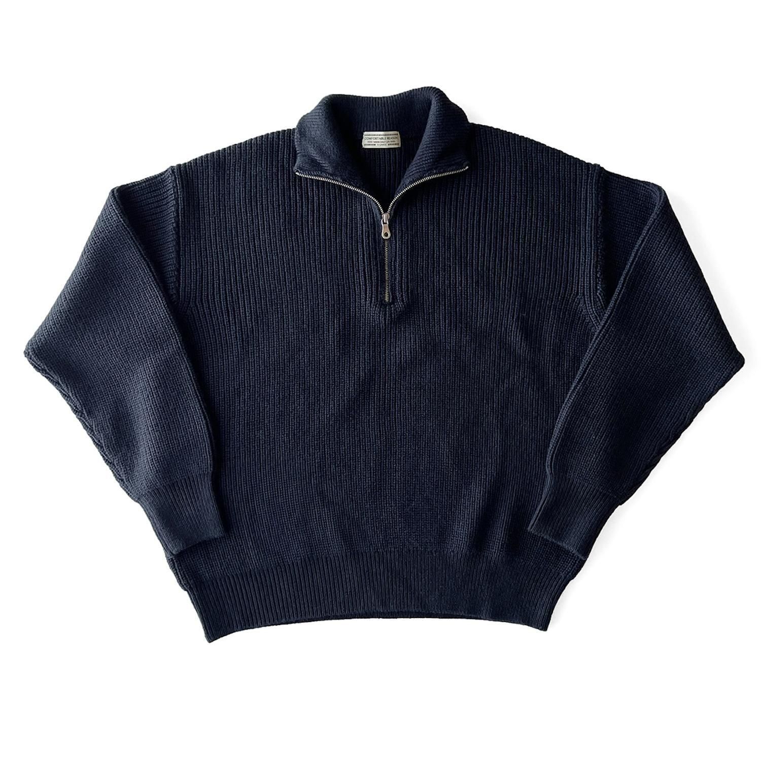 ウールアクリル素材でミドルゲージのハーフジップニットです。