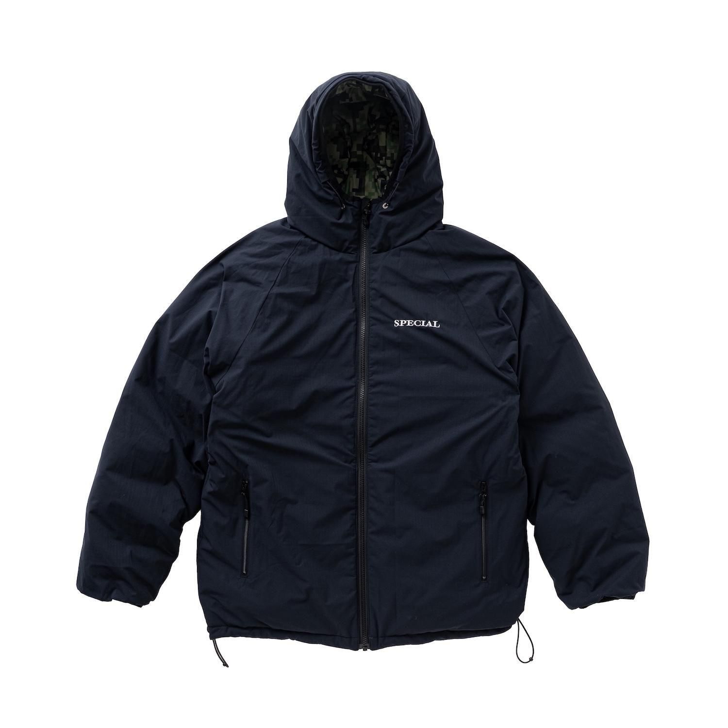 CAMO柄を配置、裏返すと無地ブラックのリップストップ仕様に切り替わり、